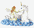 30081.jpg Unicorn comforted by a fairy on a dreamlike cloud. Medieval Legends