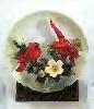 Unique three-dimensional plate portrait of brilliant red cardinals on a
