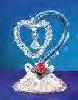 Two beautiful birds sit atop a delicate glass heart which encircles the